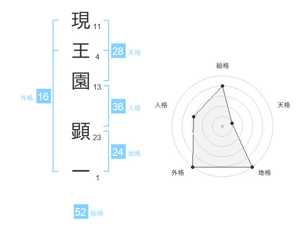 現王園 顕一さんの総格は52画の4点!