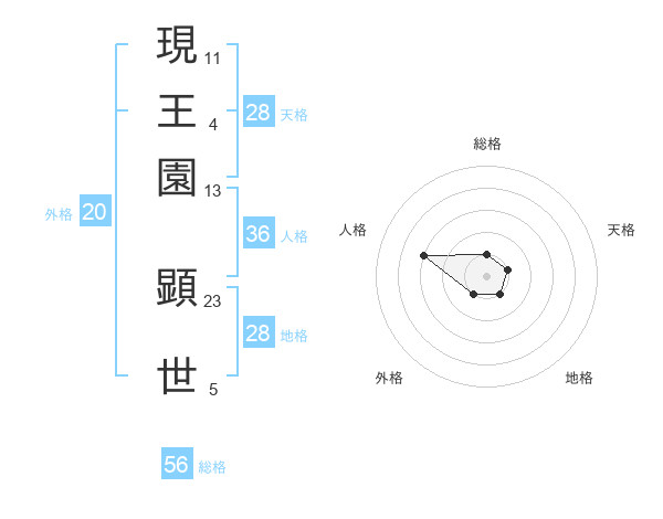 現王園 顕世さんを姓名の画数から五運を鑑定