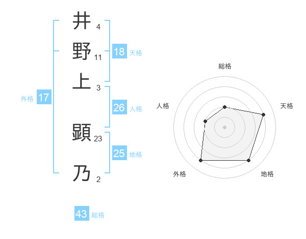 井野上 顕乃さんを姓名の画数から五運を鑑定