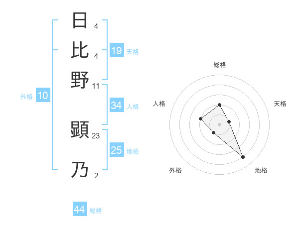 日比野 顕乃さんの総格は44画の2点!