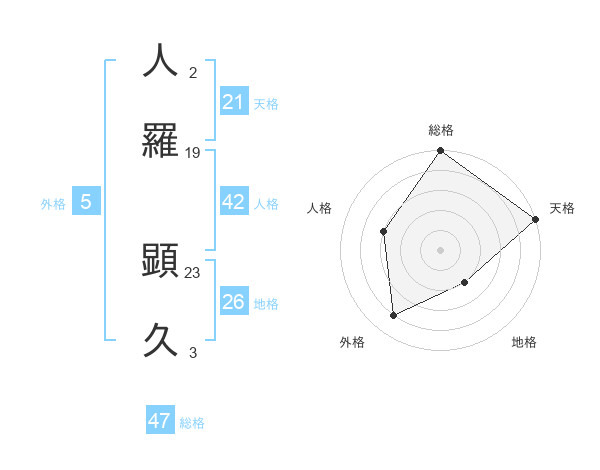 人羅 顕久さんの総格は47画の5点!
