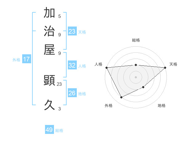 加治屋 顕久さんを姓名の画数から五運を鑑定