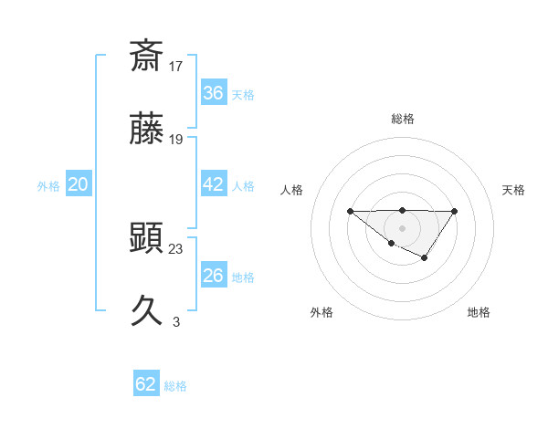 斎藤 顕久さんの総格は62画の1点!