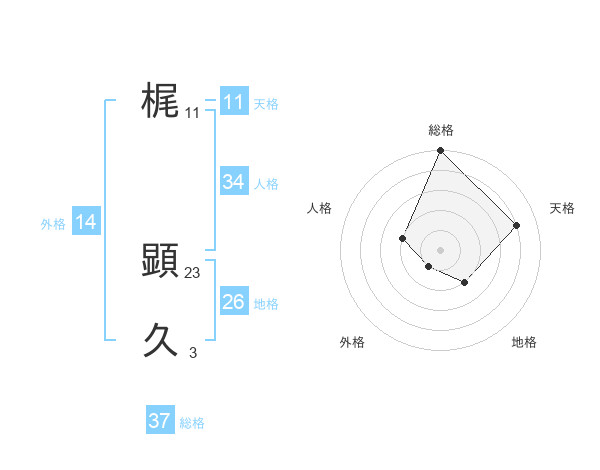 梶 顕久さんの総格は37画の5点!