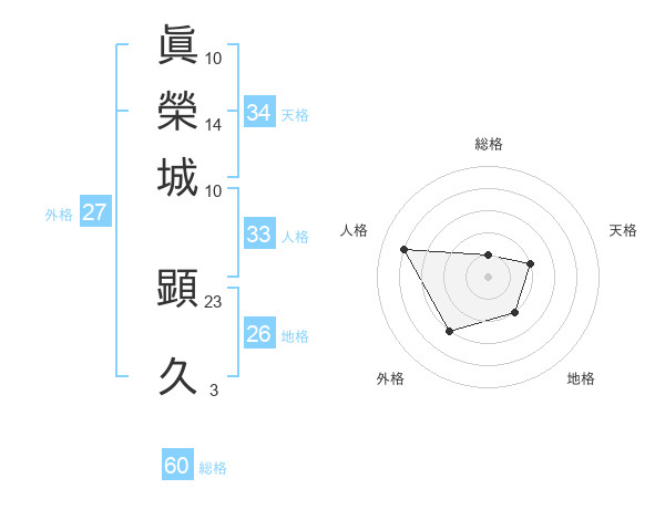 眞榮城 顕久さんを姓名の画数から五運を鑑定