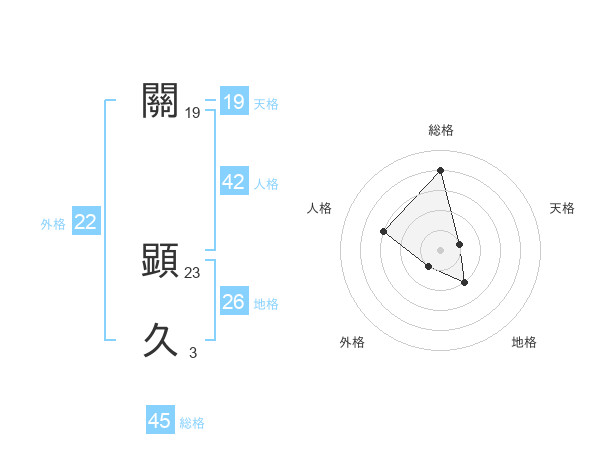 關 顕久さんの総格は45画の4点!