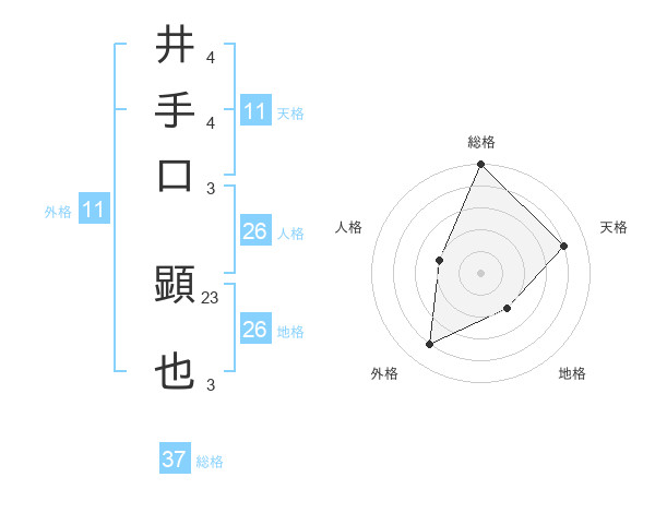 井手口 顕也さんの総格は37画の5点!