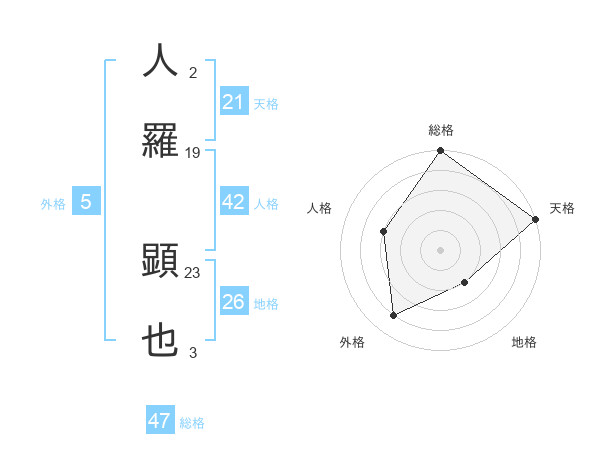 人羅 顕也さんの総格は47画の5点!