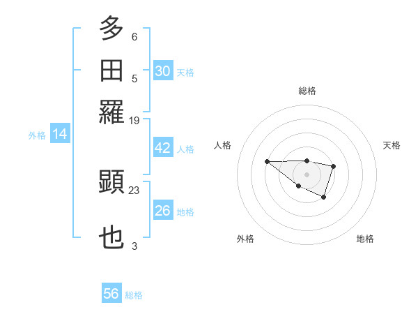 多田羅 顕也さんを姓名の画数から五運を鑑定