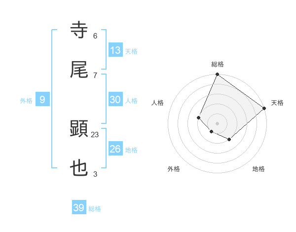 寺尾 顕也さんを姓名の画数から五運を鑑定