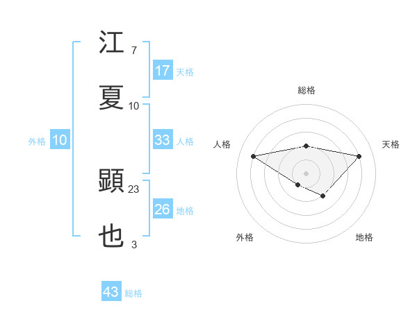 江夏 顕也さんを姓名の画数から五運を鑑定