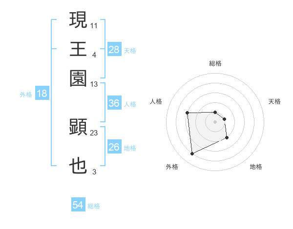 現王園 顕也さんを姓名の画数から五運を鑑定