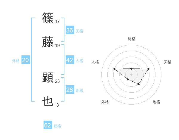 篠藤 顕也さんの天格は36画の3点!