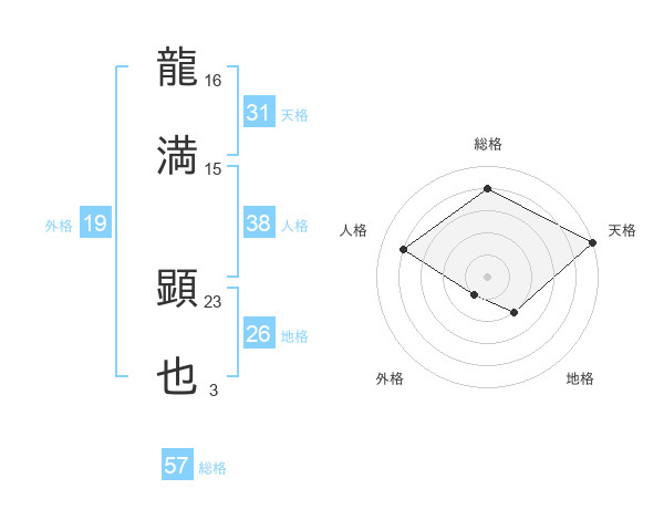 龍満 顕也さんの総格は57画の4点!