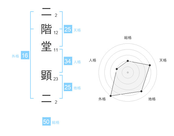 二階堂 顕二さんの総格は50画の2点!