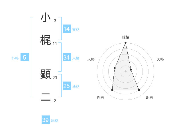 小梶 顕二さんの外格は5画の4点!