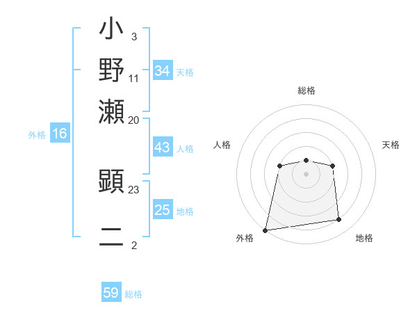 小野瀬 顕二さんを姓名の画数から五運を鑑定
