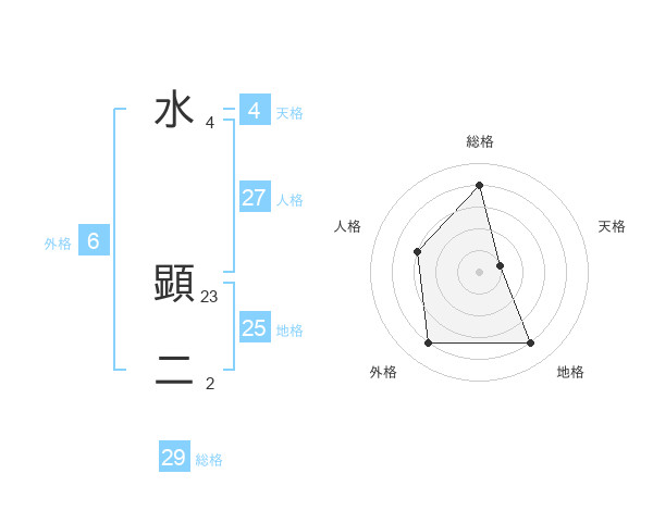 水 顕二さんの総格は29画の4点!