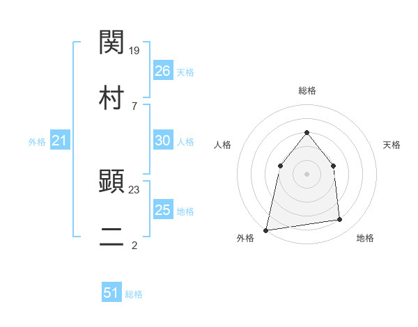 関村 顕二さんの総格は51画の3点!
