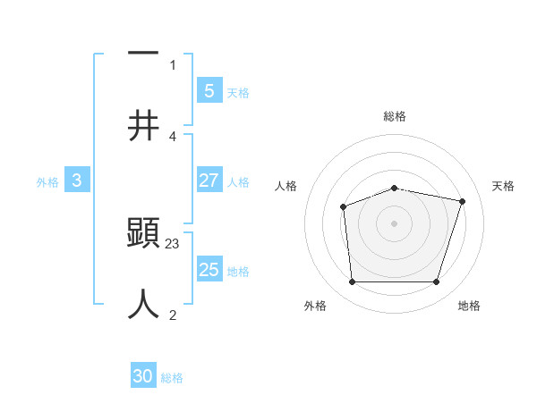 一井 顕人さんの総格は30画の2点!