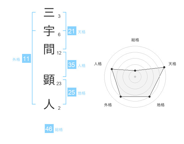 三宇間 顕人さんの総格は46画の1点