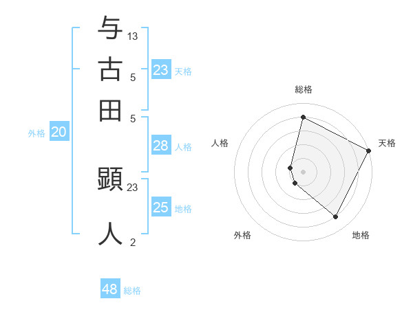 与古田 顕人さんを姓名の画数から五運を鑑定