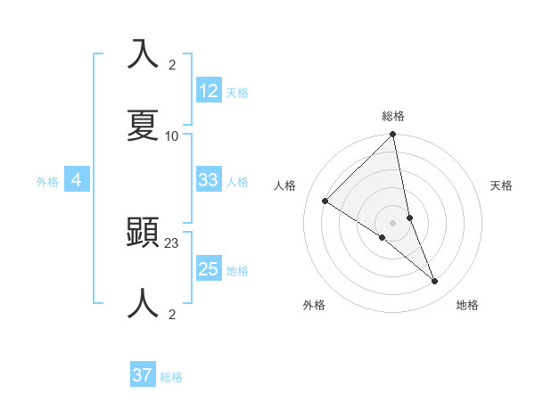 入夏 顕人さんを姓名の画数から五運を鑑定
