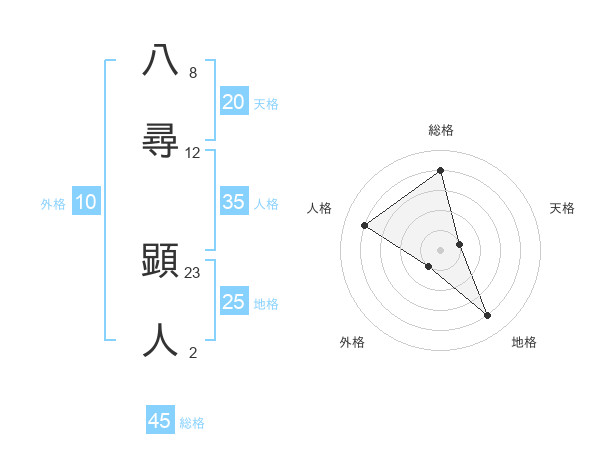 八尋 顕人さんの総格は45画の4点!