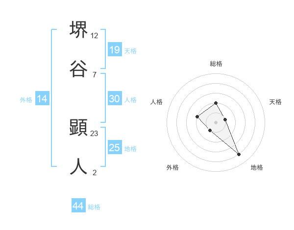 堺谷 顕人さんの総格は44画の2点!