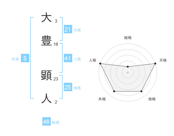 大豊 顕人さんの天格は21画の5点!