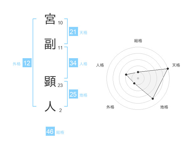 宮副 顕人さんの総格は46画の1点!