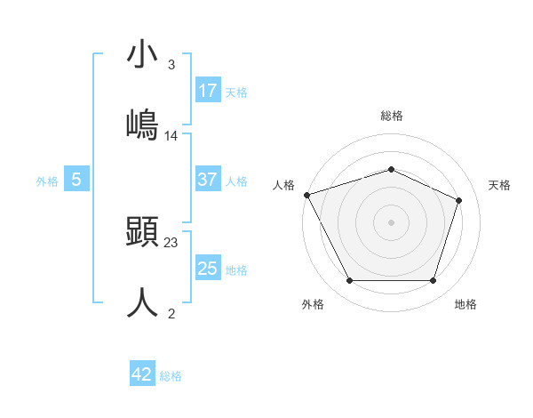 小嶋 顕人さんを姓名の画数から五運を鑑定