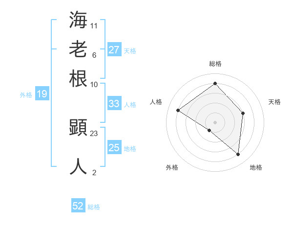 海老根 顕人さんを姓名の画数から五運を鑑定