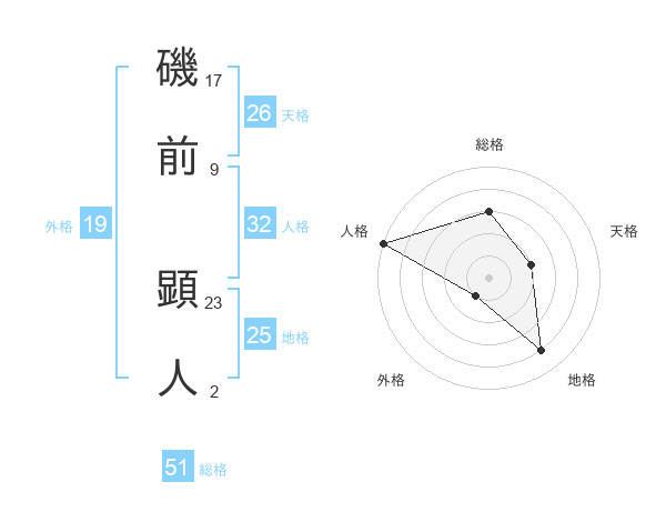 磯前 顕人さんの総格は51画の3点!