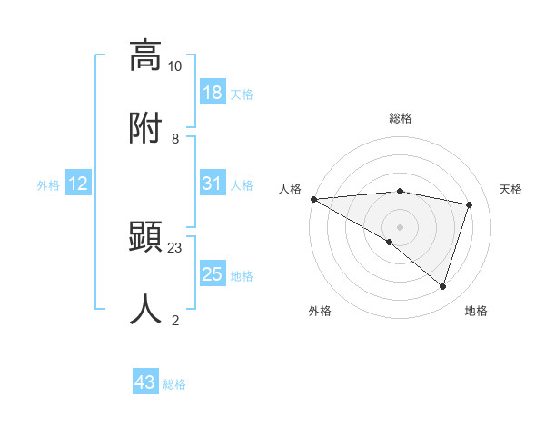 高附 顕人さんの総格は43画の2点!