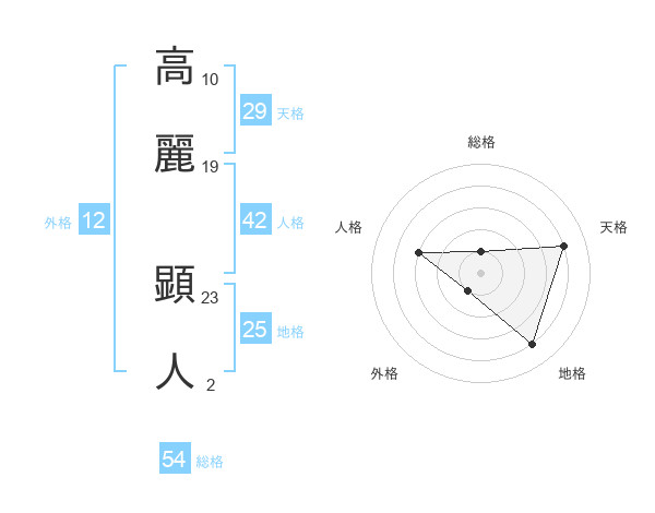 高麗 顕人さんの総格は54画の1点!