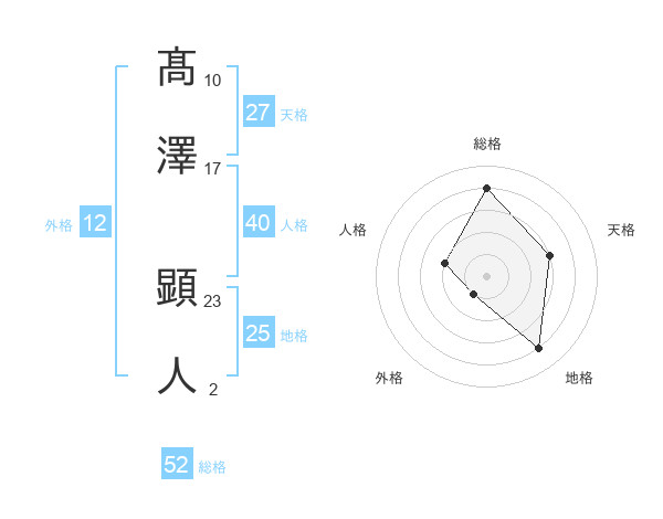 髙澤 顕人さんを姓名の画数から五運を鑑定