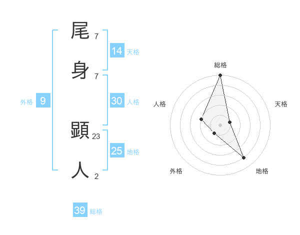 尾身 顕人さんを姓名の画数から五運を鑑定