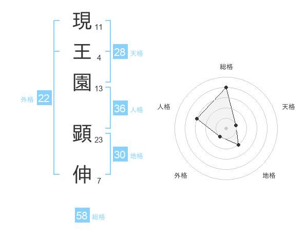 現王園 顕伸さんを姓名の画数から五運を鑑定