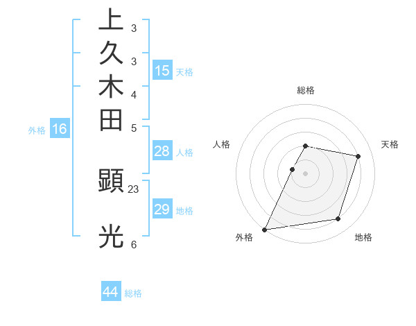 上久木田 顕光さんの総格は44画の2点!