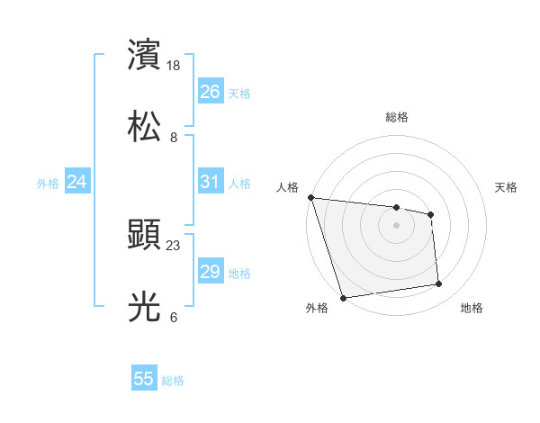 濱松 顕光さんの総格は55画の1点!