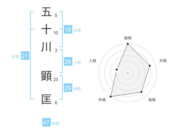 五十川 顕匡さんを姓名の画数から五運を鑑定
