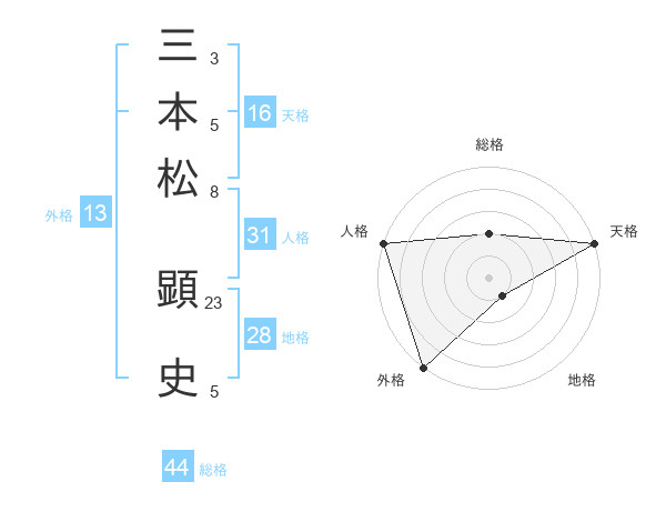 三本松 顕史さんを姓名の画数から五運を鑑定
