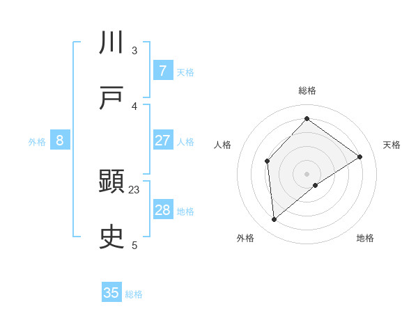 川戸 顕史さんを姓名の画数から五運を鑑定
