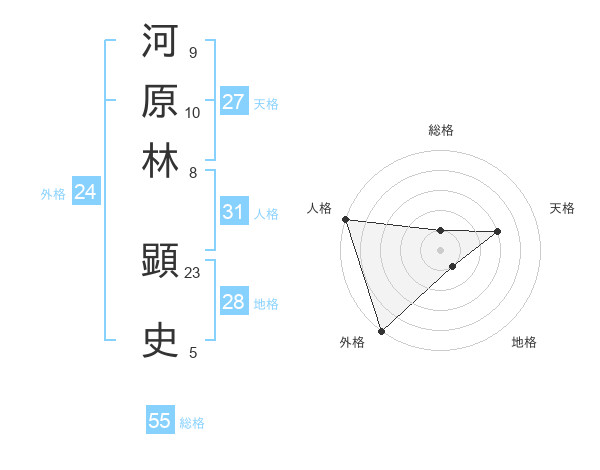 河原林 顕史さんを姓名の画数から五運を鑑定