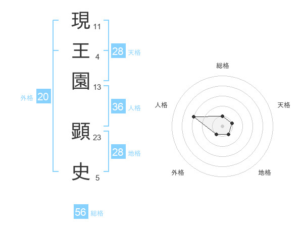 現王園 顕史さんを姓名の画数から五運を鑑定