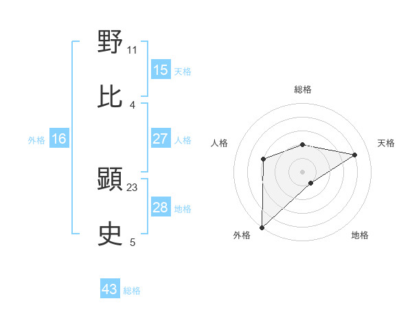 野比 顕史さんの総格は43画の2点!