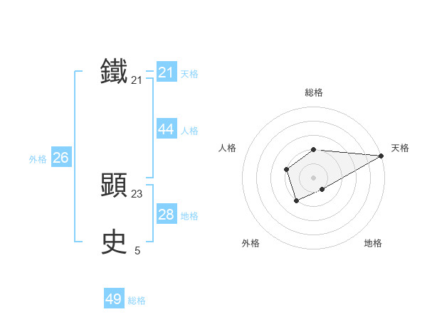 鐵 顕史さんを姓名の画数から五運を鑑定