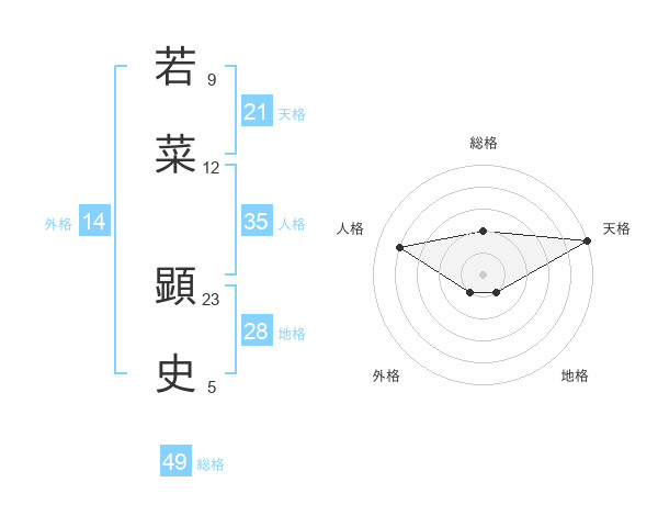 若菜 顕史さんの天格は21画の5点