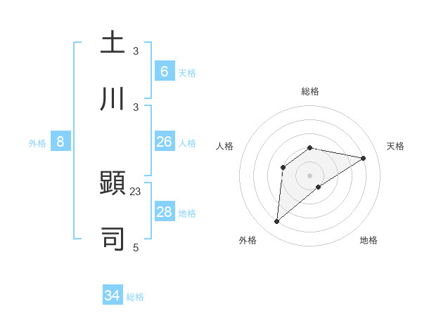 土川 顕司さんの総格は34画の2点!